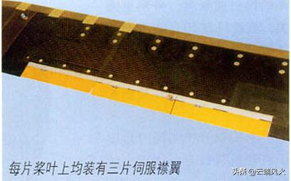 带有伺服襟翼的桨叶,就是在桨叶的靠近尖部位置安装几个私服襟翼,这些襟翼会随着螺旋桨的转动而上下偏转,通过调节襟翼的偏转方向,来调整气流的方向,从而让桨尖涡流与桨叶避开,避免相撞,从而减小振动与噪声。不过这种方法控制系统比较的复杂,稳定性与可靠性不好。