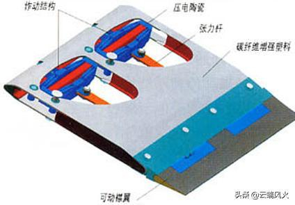 在桨叶上铺能够驱动的纤维,比如加入PZT晶体,在加电以后,纤维会发生变形,从而带动桨叶变形,来达到想要的效果。不过这种方法工艺复杂,成本高昂。