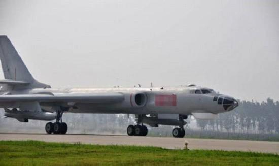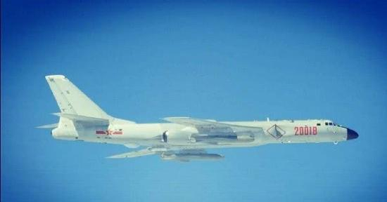 空军轰6K挂载KD63执行远航训练任务 注意机腹下面数据链吊舱
