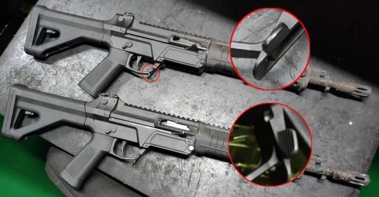 而国产新步枪的的设计则类似AR系列,直接在抛壳窗后部设计了抛壳限位器。