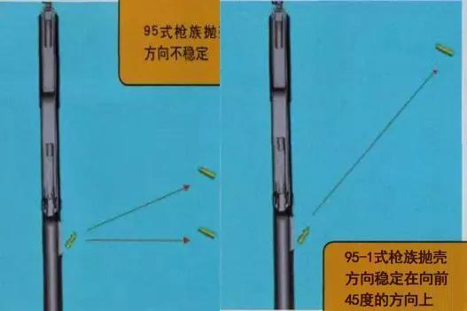 这个设计就叫做抛壳限位器。由于工艺原因,早期95抛壳方向并不稳定,因此在95-1改进时,把抛壳窗后沿向前移动了5mm,使抛壳方向稳定在右前方45度方向。