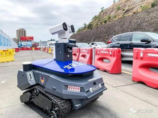 图注:警用巡视机器人“建国”在深圳高速路口执行巡逻任务