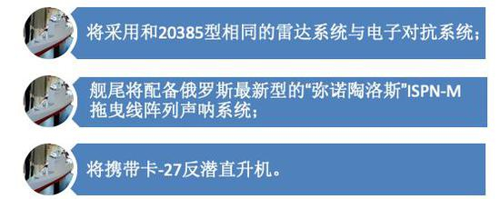 - 更加强化反潜作战能力,大型声呐系统不断配套升级,同时装备反潜直升机;