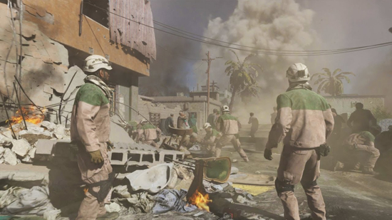 游戏中头戴白头盔的救援人员显然是在影射“白头盔”叙利亚民防组织不过在中文版和俄文版游戏中这些白头盔都变成了“绿头盔”看来美国人对自己的作品还是很有AC数的