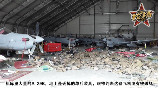随着塔利班接管机场,并拍摄了大量的宣传视频,我们可以惊讶的发现,美军用“非军事化”而非“销毁”一词,可能并不仅仅是前者听起来更专业,而是更准确的阐述美军留给了塔利班大量设备这一事实。这些机库里的A-29B至少外观上并没有受到破坏,甚至发动机排气口上的罩子还完好。鉴于麦肯齐将军在发言时表示,这些飞机无法飞行,也不排除这是负责破坏该机库的美军为了节约时间,仅对关键设备做出破坏。。