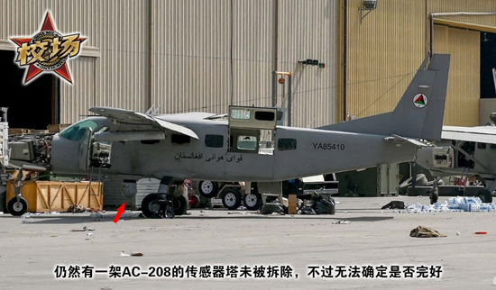 相比之下,美军对直升机和机库外的大型固定翼飞机的破坏就较为敬业了。C-130的左侧主起落架被破坏,绝大部分的直升机都被美军敲掉了玻璃,有些敬业的美军甚至耐心的把驾驶舱仪表盘挨个敲了一遍,临走前还把桨叶砸断。除此之外,根据阿富汗国民就第215军团前司令的说法,在喀布尔被塔利班占领前,大部分敏感设备就已经被拆除,例如直升机上的导弹告警装置和A-29用于侦察和激光指示的“炮塔”就被物理拆除,有关的跟踪软件和情报系统也被删除。