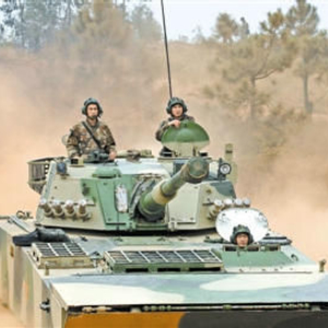 隆冬的岭南大地,群峰凝黛,江河淌绿。伴随着隆隆炮声和战车卷起的烟尘,记者来到广州军区第42集团军某装甲团新装备实兵实弹演练场。
