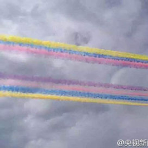 Cancer_安文:飞机拉起彩虹,空中“70”造型帅炸了!