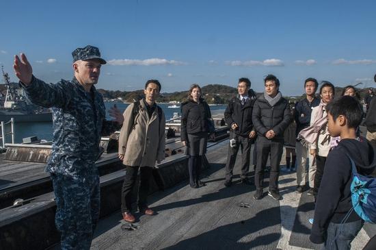 5张日本民众登美航母参观察