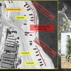美媒对永兴岛海滩上载具的分析,称是红旗-9防空系统,不过却配了个5P85SE底盘的S-300PMU的图