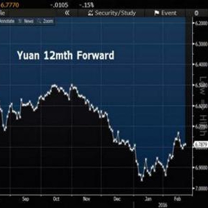 等到中国春节假期结束后,如下图所示,12个月美元兑人民币远期汇率直接自6.95向下跌至6.70附近。