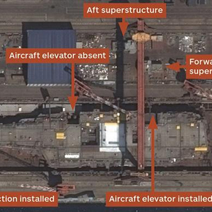 照片显示,随着船头部分和其他外部结构的加装,001A的装配接近完成。干船坞附近的两个制造区域已经将各种材料大部清理完毕,说明001A建造工作接近尾声。极少的未安装部件依然存在,比如前升降机。