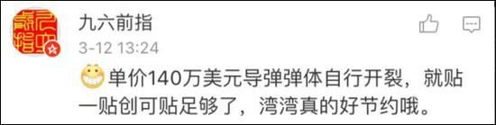 另据联合新闻网报道,破裂的导弹是RIM-66标准二型防空导弹(SM-2),射程74至167公里,是目前台湾海军射程最远的防空武器,配属于4艘纪德级驱逐舰上,每枚单价约为140万美元(约合人民币967万)。
