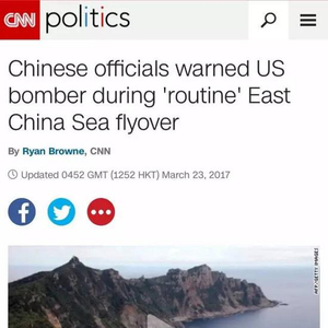 CNN在报道中还称,美军轰炸机进入了中国东海的防空识别区,韩国和日本都与中国在这一区域存在争议。美国也不承认中国在2013年11月设立东海防空识别区。