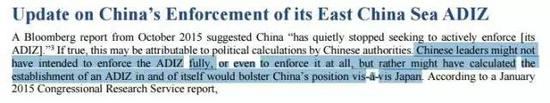 去年美国一则报告曾指出,中国并没有完全执行东海防空识别区。报告称,中国可能根本无意真正实施东海防空识别区,宣布设立防空识别区是意图表达对于日本的立场和态度。