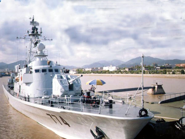 实验AK-176M型76毫米舰炮的037II型774号导弹艇,摄于90年代后期