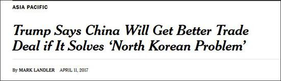 美国纽约时报今天发表题为《特朗普解决朝鲜问题的筹码:中美贸易协议》的文章称,上周在佛罗里达州棕榈滩会晤时,中国国家主席习近平没有向特朗普公开表示承诺,美国官员说,就连在私下的交谈中,这位中国领导人也很慎重。