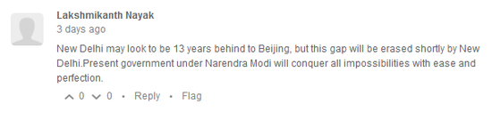 现在新德里也许落后北京13年,不过这个差距很容易被追上的。莫迪领导下的政府能让一切不可能变成可能。