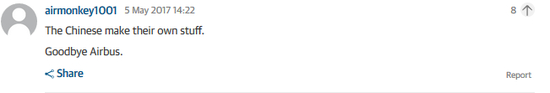 airmonkey1001:中国人制造了他们自己的飞机,再见了,空客。