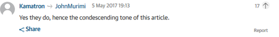 Kamatron回复JohnMurimi:他们当然害怕啊,所以整篇报道都是高高在上的语气。