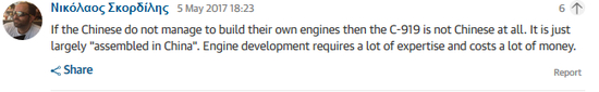 Νικόλαος Σκορδίλης:如果中国人不能造自己的航空发动机,那么C919就不能说是中国的产品,那只能说是“在中国组装的”。研发航空发动机需要大量的专业知识,而且耗资巨大。