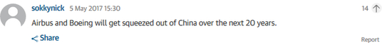 sokkynick:空客和波音20年后可能会被挤出中国市场。