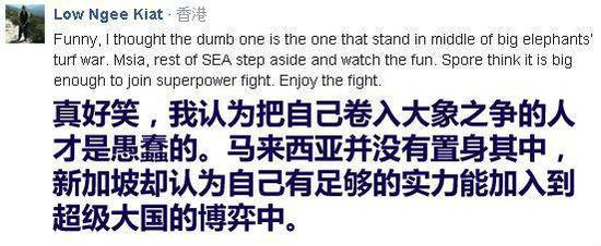 对于“中国为什么选择马来西亚,而非新加坡”的疑问,有新加坡网友这样回答:“因为新加坡太聪明了,中国无法应付。”