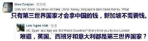 “只有第三世界国家才会拿中国的钱,新加坡不需要钱。”另一位新加坡网友看上去更加洋洋自得。