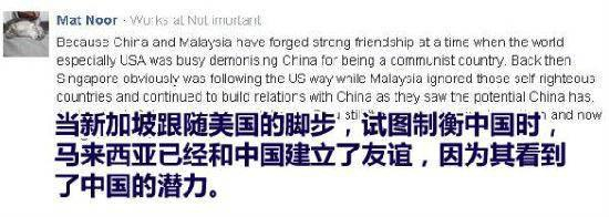 而在网友“Mat Noor”看来,中国“选择”马来西亚而非新加坡,这一点也不让人意外: