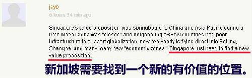 网友“jayb”评论道:新加坡真正的价值,在于当中国还处于“封闭”状态时,扮演中国通向亚太的“跳板”。然而如今,全世界的人都会直飞北京、上海。新加坡需要找到一个新的有价值的位置。
