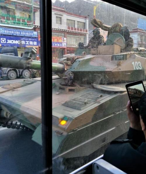 拉萨街头,一辆取下反应装甲的新轻坦,可见在其重型反应装甲下方还有轻型复合装甲,这是世界上“独一份”的设计