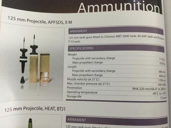用于出口的125毫米二期弹,穿深标注与105毫米BTA2型相同