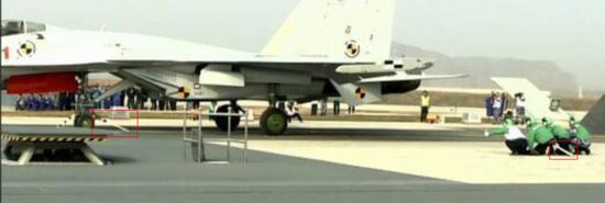 不同于“小巧玲珑”的控制中心,照片里的弹射型歼15还专门使用了非常有“TOP GUN”范儿的制动杆。现代喷气式舰载机为了保证在发动机推力最大时才开始滑跑,必须对机轮进行制动,并能够在瞬间解除。此前,辽宁号上承继苏/俄海军的习惯,使用了制动轮挡,缺点是必须为起飞重量和主轮距不同的机型“量身定制”,而且抽离不便。