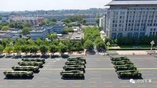 ▲资料图片:2015年9月3日,在纪念抗日战争暨世界反法西斯战争胜利70周年大会上,常规导弹第一方队的东风-15B弹道导弹发射车、东风-16弹道导弹发射车经过长安街地区。