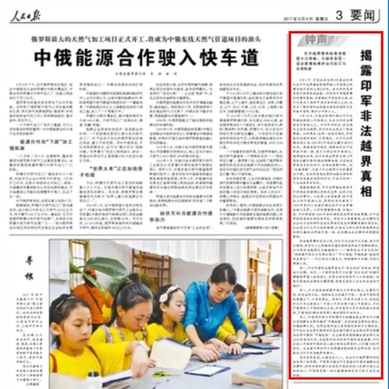 8月4日凌晨,《人民日报》“钟声”版块发表题为《揭露印军非法越界真相》的评论文章。