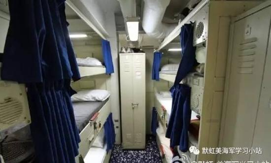 这其实就是美国海军坚持多年的“混舱”制度,即不允许某个部门或专业的人扎堆住在一起,一定要打散了,在不同的住舱和不同部门的混住。不像有些国家海军为了管理方便,同部门的都住在一起。