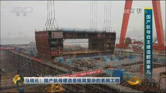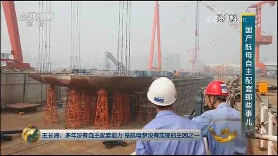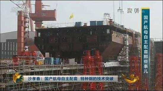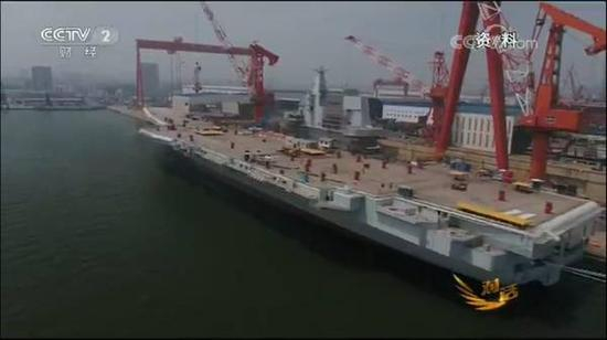近日,央视经济频道播出了名为《前进吧,中国航母》的中国首条国产航母建造的相关报道,背景画面放在中船重工大船集团的厂区,视频背景就是舾装系泊中的中国首条国产航母。