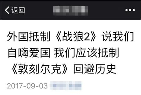 文章称《战狼2》表现的是完全的胜利,而敦刻尔克则是一场大逃亡,不符合传统中国价值观。