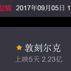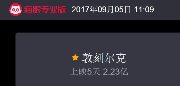 [文/观察者网 王骁]9月1日,著名导演诺兰的新作《敦刻尔克》在中国正式上映。5天拿下2.23亿票房。