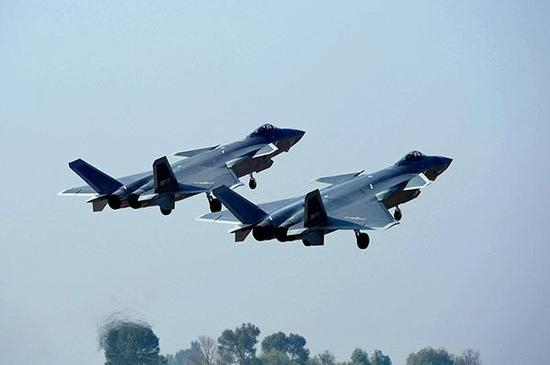 2017年7月,中国空军歼-20战斗机双机编队起飞。视觉中国 资料