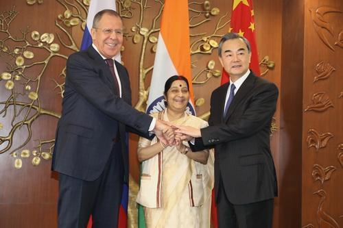 就在同一天,中俄印外长第十五次会晤也在新德里举行,三国外长预计就地区安全、经济合作等热点议题展开磋商。中国外长王毅表示,中俄印合作应把重点放在就国际地区重大问题进行战略沟通协调,对外发出更多一致声音。