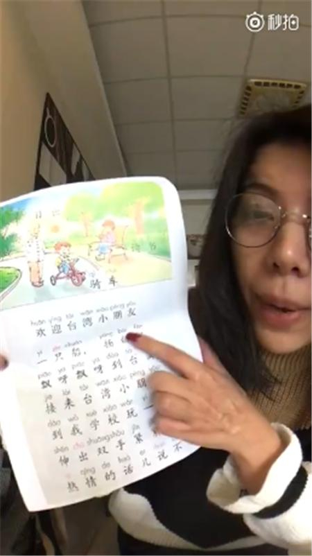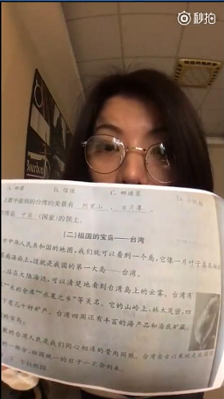 微博网友@追求和平統一的程艾葳 来自台湾,近日,Facebook被封号的她在微博上发布了一段视频,与台湾同胞分享了大陆的小学课本中关于台湾的课文。