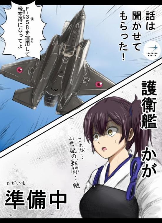 日本漫画,“加贺”(出云级二号舰)——要搭载F-35B?这么大的飞机啊……压力好大……