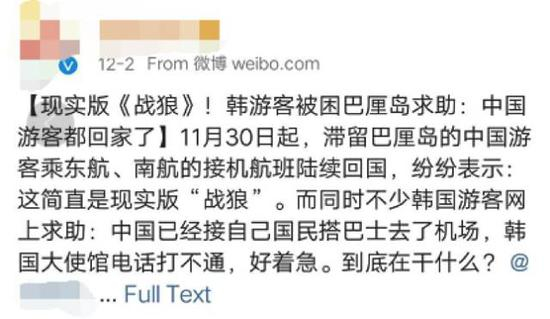 这一情况,始于一些国内关于中国游客从巴厘岛返回的新闻报道。这些报道竟纷纷给此事打上了什么“现实版战狼2”的标签,还炒作说这又是一次“让中国人感到骄傲与自豪的撤离”,甚至还有人还把韩国、日本和台湾地区游客的遭遇的不顺拿出来进行对比,想以此进一步突出我国在此事上远远超过其他国家的“伟大”……。