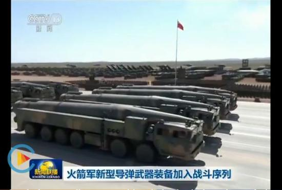 “它核常兼备,可实施快速核反击,能对陆上重要目标和海上大中型舰船实施常规中远程精确打击。”央视的描述虽然没有明确导弹型号,但对比之前的信息,不少专家和网友认为,这就是东风-26弹道导弹。