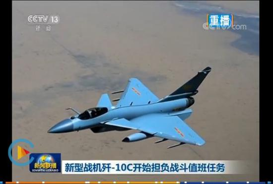 第二天,也就是4月16日,新闻联播再次曝光,空军新型战机歼-10C开始担负战斗值班任务。“歼-10C是第三代改进型超音速多用途战机,配装先进航电系统及多型先进机载武器,具备中近距制空和对地面、海面目标精确打击能力。”甚至有媒体评价其为“最强三代战机”。