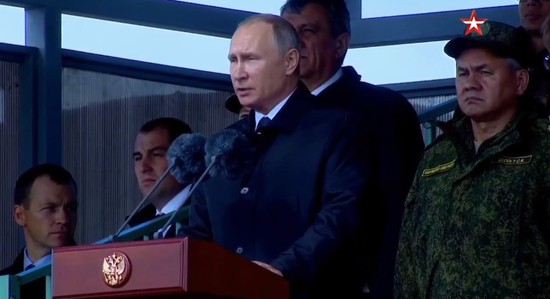 [观察者网综合报道]据俄罗斯红星电视台9月13日报道,9月13日中午,参加“东方-2018”战略演习的中俄两军部队在楚戈尔综合演习场举行了联合阅兵式。这次阅兵规模宏大,几乎全部参演的主战车辆都参加了这次检阅。俄罗斯总统普京,俄罗斯联邦国防部长绍伊古,俄军总参谋长格拉西莫夫到场观看阅兵式,俄罗斯总统普京在检阅前发表了讲话。