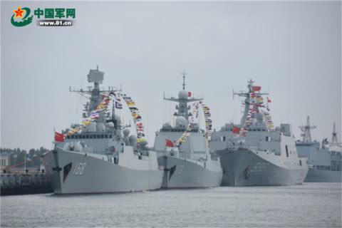 10月21日下午,中国海军在港舰艇挂满旗迎接参演舰艇进港(图源:中国军网)