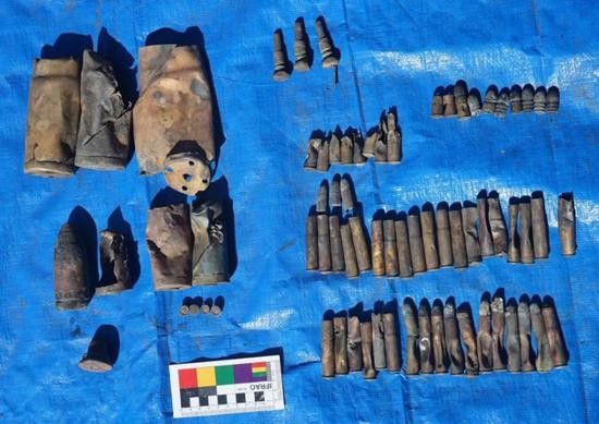 图为2018年从辽宁大连庄河海域“经远舰”沉船打捞出水的毛瑟步枪子弹、左轮手枪子弹、37毫米炮弹、47毫米炮弹等。新华社发(国家文物局水下文化遗产保护中心供图)