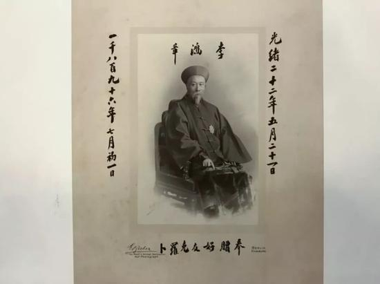 图为翻拍的克虏伯基金会收藏的李鸿章照片。这是甲午海战结束后,李鸿章在访问德国时赠予克虏伯工厂当时掌门人的照片。(新华社记者张远摄)